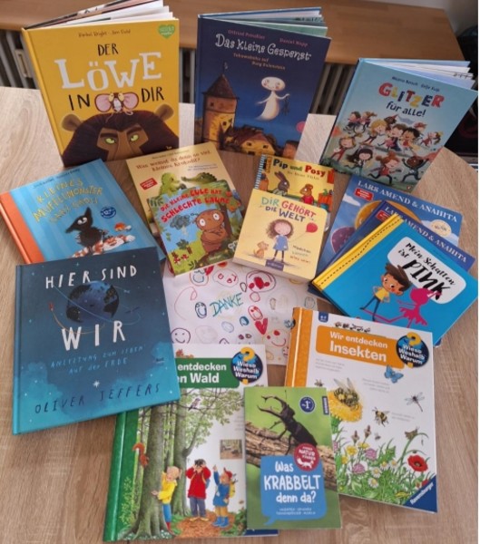 Wir freuen uns, dass unsere Bücherei neue Bücher für unsere jüngeren und älteren Kinder bekommen hat. Zurzeit werden die Bücher in den Gruppen fleißig gelesen. Ab Januar 2026 können diese neuen Bücher im Rahmen unserer wöchentlich stattfindenden Bücherei auch nach Hause ausgeliehen werden.